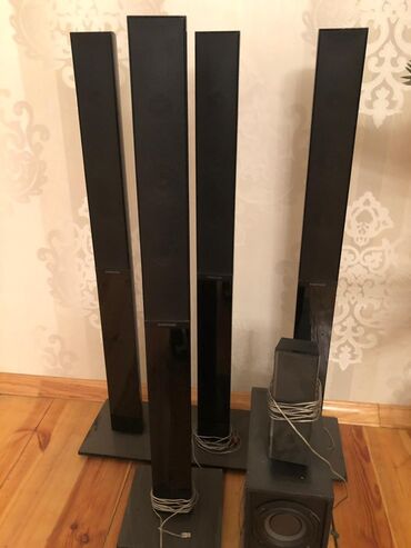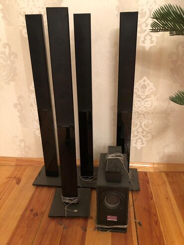 - Tam dəst: 4 ədəd hündür (tower) ön/arka akustik sütunlar, 2 ədəd kiçik surround/center tipli dinamika və 1 ədəd passiv subwoofer.
