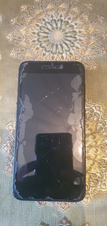 Şəkillərdə göstərilən telefon və qutusu təqdim olunur. Ekranda qoruyucu şüşə/zərfin sındığı görünür.