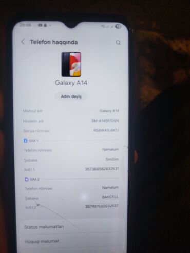 - Seriya nömrəsi və model məlumatları “Telefon haqqında” səhifəsində təsdiqlənib