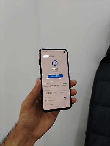 Samsung Galaxy S10+ – ağ rəng - Ekran: 6.4" Dynamic AMOLED, kənarları əyri, ön tərəfdə ikili kamera üçün “punch‑hole” - Yaddaş/RAM: 1 TB daxili yaddaş (877.7 GB boş göstərilir) + 12 GB RAM - Prose...