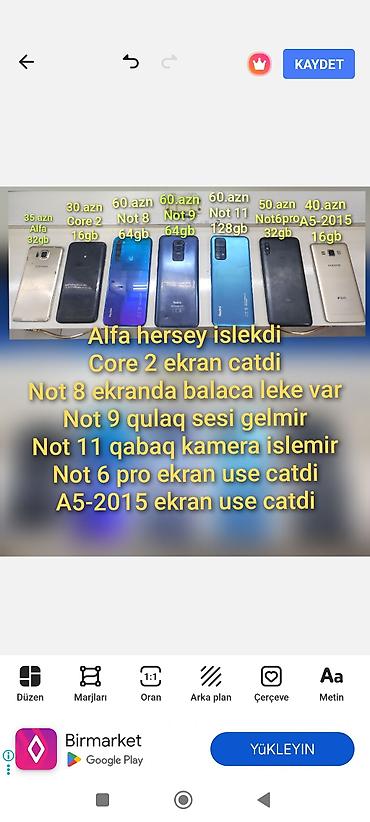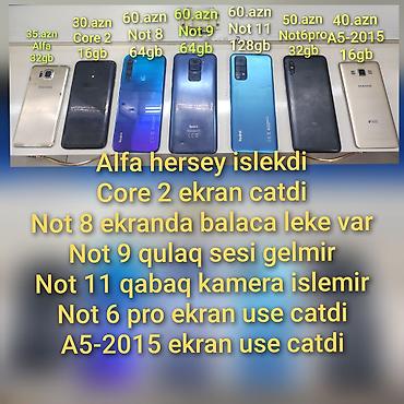 - Samsung A5 (2015), 16 GB – 40 AZN. Qeyd: “A5-2015 ekran üzü çatdı”.