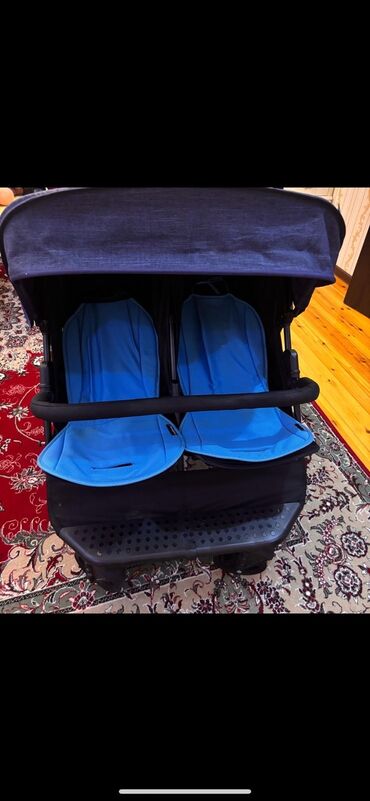 İkiz uşaq arabası – yan‑yana iki oturacaq - Rəng: tünd göy/boz tonları, qara şassi - Konfiqurasiya: iki ədəd ayrıca beşik tipli uzanma bloku və iki ədəd oturacaq bloku - Qapaqlı, günlükli beşiklər...