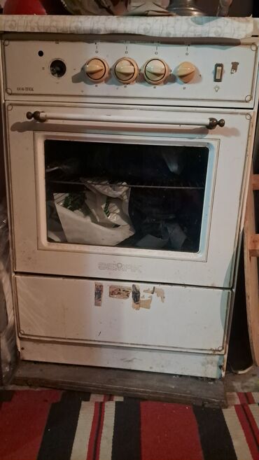 - Qaz sobası, ön şüşəli qapı və içəridə tel rəf.