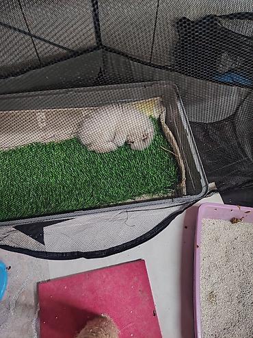 - İçlik: süni ot örtüyü ilə plastik vanna/tray – evdə və açıq havada rahatlıq və təmizlik üçün.