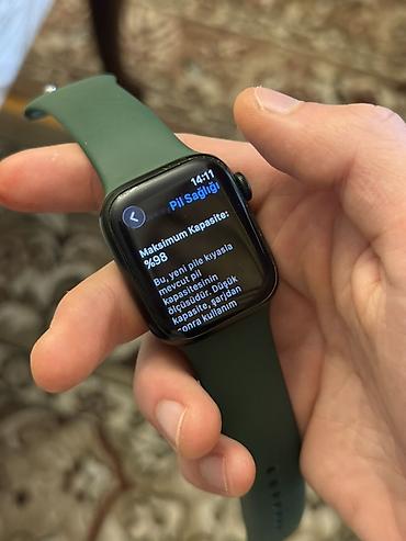 Apple Watch (Series 7 ) – 41 mm tünd yaşıl gövdə, yaşıl silikon kəmər