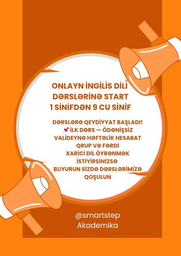 İngilis dili dərsləri – onlayn və əyani Tədris məzmunu: - Sıfırdan başlayaraq danışıq, dinləmə, oxu və yazı bacarıqları - Qrammatika izahları və praktik tapşırıqlar - Lüğət genişləndirilməsi və gü...