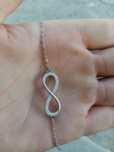 Pandora gümüş boyunbağı - Brend: Pandora (orijinal qutusu ilə) - Material: 925 əyar sterling gümüş (etiketdə “S925 ALE” işarəsi) - Kulon: ürək formasında sonsuzluq (infinity) simvolu; kənarında xı...