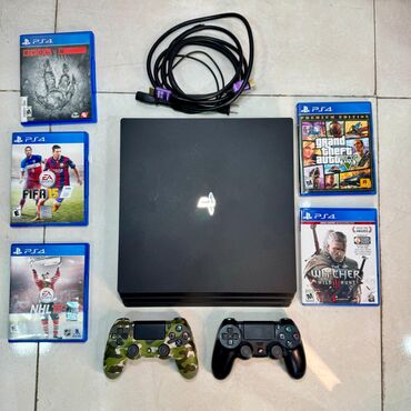 PlayStation 4 Pro oyun konsolu paketi ✅Qısaca ideal ps 4pro plombası belə açılmyıb ✅ - Model: Sony PlayStation 4 Pro (şəkillərdə PS loqolu qalın korpus) - Yaddaş: daxili HDD (PS4 Pro standartı, s...