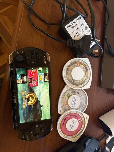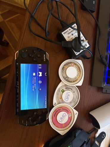 Sony PSP. Elandaki şəkillər cihazlara məxsusdur. Hər birinin Original SanDisk 64gb yaddaş kartı var. ARK-4 cfw yüklənib içində 10-larla oyun var (istəyə görə yeni oyunlar və emulator əlavə edə bil...