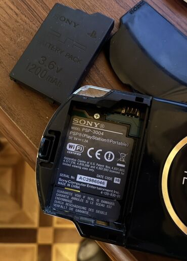 Sony PSP əl konsolu Xüsusiyyətlər: - Model: Sony PSP (UMD diskləri üçün yuva, arxa tərəfdə PSP loqosu) - Ekran: 4.3" rəngli ekran, XMB menyusu - İdarəetmə: D‑pad, analoq nəbz, klassik PlayStation ...