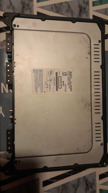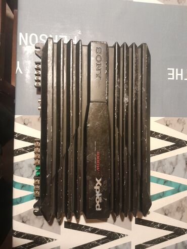 - Gücləndirici: Sony Xplod XM-1002HX (etiketdə XM-1002HX/XM-1000). 2-kanallı avtomobil güc gücləndiricisi, 1000 W maksimum çıxış. Korpus üzərində “SONY” və “Xplod 1000W” işarələri, alüminium radiatorlu dizayn. Giriş/çıxışlar: RCA line-in cütü, güc və hoparlör çıxış terminalları, qoruyucu sığortalar. Etiketdə qoşulma sxemi göstərilib.