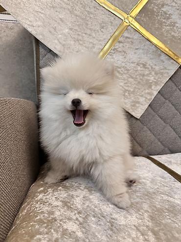 Cins: Pomeranian (Spitz) Rəng: ağ, yumşaq və qalın yun Ölçü: kiçik, yığcam bədən quruluşu Xarakter: mehriban, oynaq, diqqətsevər; evdə və mənzildə rahat yaşayır Uyğunluq: uşaqlarla və ailə ilə ünsi...