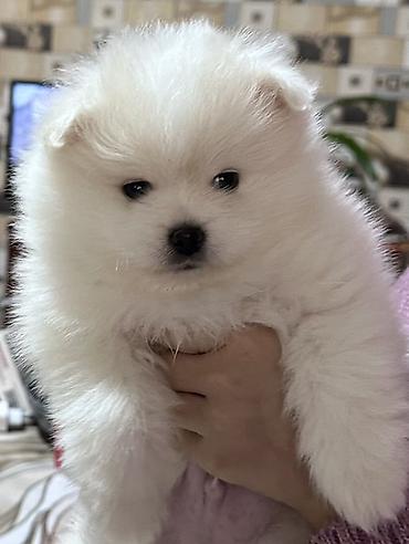Pomeranian tipli kiçik ölçülü ağ tüklü it balası. Ev şəraitinə uyğundur, sakit və mehribandır, ağıllıdır. Oyuncaqları ilə oynamağı sevir, qucaq sevəndir. Bina evində saxlanması çətin olduğu üçün ve...