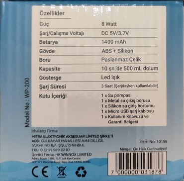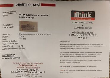 Su pompası sarjlı tək matorlu yeni modeldir. Çox gözəldir sadələrdən