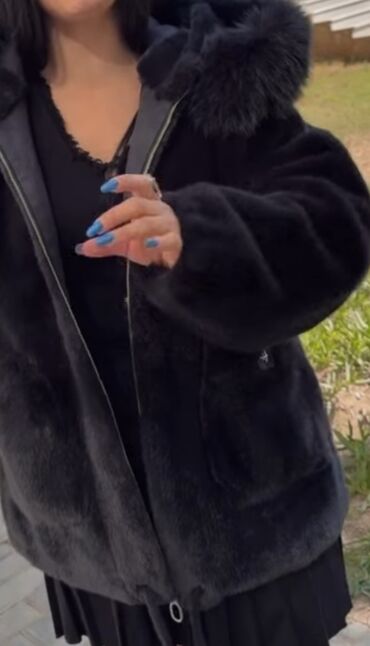 Qara rəngli tüklü gödəkcə. Yenidir, geyinilməyib. M bədən