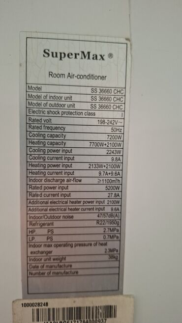 SuperMax SS 36660 CHC – döşəmə tipli kondisioner - Tip: Room Air-conditioner (floor/standing) - Model: SS 36660 CHC (daxili blok SS 36660 CHC, xarici blok SS 36660 CHC) - Gərginlik: 198–242V, 50Hz...