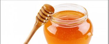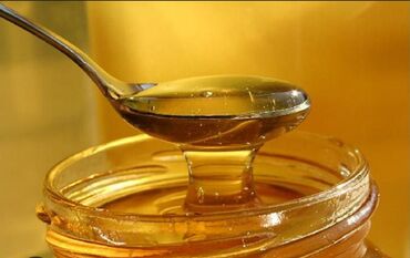 - Şüşə qabda, qatı və şəffaf teksturalı, qızılı-琥珀 rəngli bal.