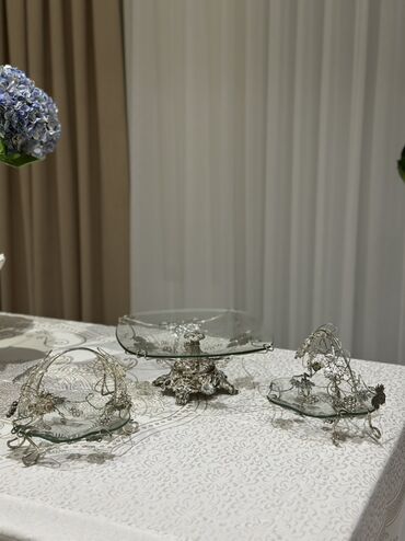 Lüks şüşə şirniyyat/servis dəsti - Material: şəffaf qalın şüşə, metal