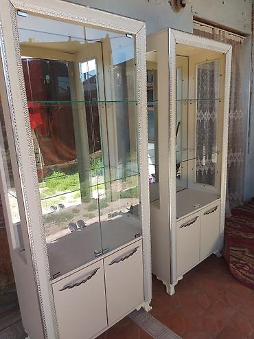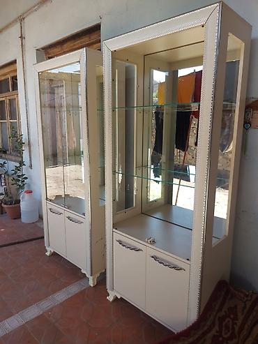 2 ededdir.1 ededi 150 AZN-dir. Klassik üslubda, vitrinalı - Rəng: krem-qızılı tonlarda - Material: taxta karkas, ön hissədə şüşə qapı; içəridə güzgülü arxa panel - 3 ədəd şüşə rəf – qədəh...