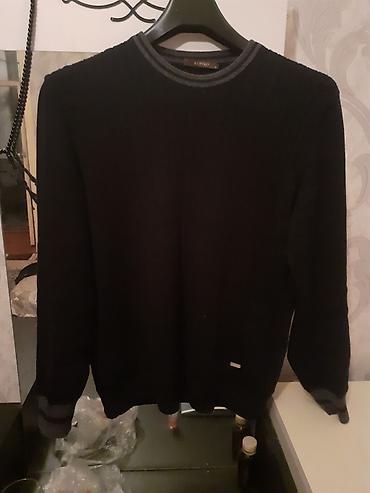 Qara rəngli kişi sviteri Hər ölçüdə var - Klassik, dairəvi yaxalı dizayn - Uzunqol, bədənə rahat oturuş - Nafis, hamar trikotaj faktura - Təmiz, naxışsız minimalistik üslub – ofis və gündəlik geyim...