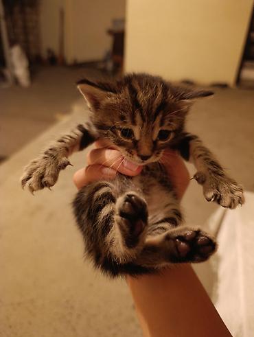 Məişət üçün mehriban və aktiv pişik balaları SAHİBLENDİRİLİR!!! - Cins: zolaqlı ev pişiyi (tabby) - Rəng: qəhvəyi-boz tonlarda, tünd zolaqlar və qarın hissəsində xallar - Yaş qrupu: balalar (fotola...