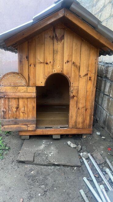 Ev heyvanı üçün rahat, külək və yağışdan qoruyan, möhkəm taxta it evi. İçinə döşək və ya izolyasiya materialı əlavə etməklə ilboyu istifadə mümkündür.