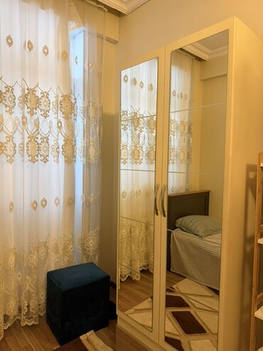 - Güzgülü qarderob: iki qapılı, tam boy güzgülər, daxildə asılqan və rəf bölmələri. İşığı əks etdirərək məkanı vizual olaraq genişləndirir.