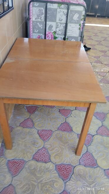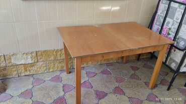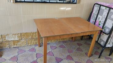 - Konstruksiya: 4 ədəd düzbucaqlı taxta ayaq, üst hissə 2 paneldən ibarətdir (ortadan birləşmə xətti var)