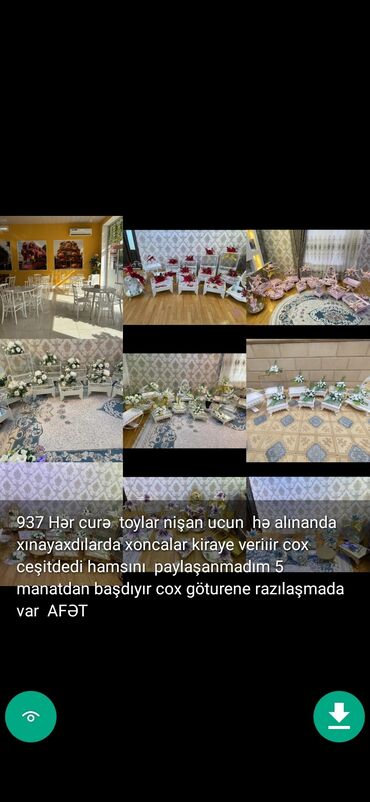 Xonchalar. Cemi 1 defe istifade olunubdu. Kiraye yoxdu !!! Satiram !! Hamisi ss-design-dan alinib. Heresi 80 azn