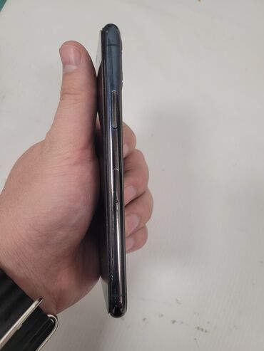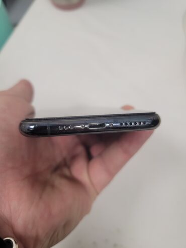 Apple iPhone (Pro seriyası) - Rəng: Qrafit/qara tonlu (mat arxa səth, Apple loqosu) - Korpus: küncləri düz xəttli dizayn, şüşə arxa və metal çərçivə - Ekran: Full‑screen OLED, Dynamic Island kəsiy...