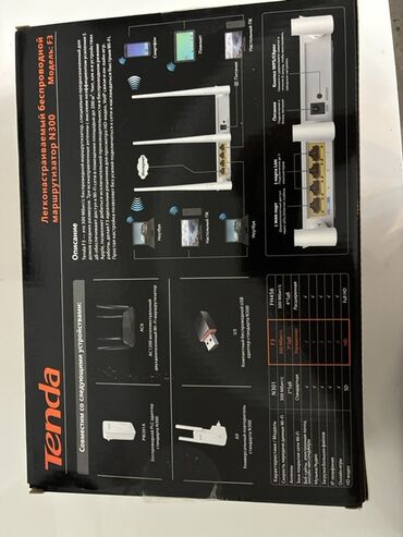- Komplekt: marşrutlaşdırıcı Tenda F3, 12V adapter, Ethernet kabeli, sənədlər/quraşdırma təlimatı