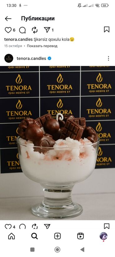 - Şüşə qabda hazırlanan, desert görünüşlü ətirli şamlar