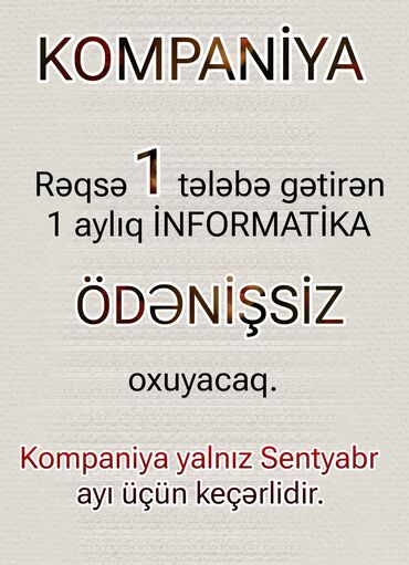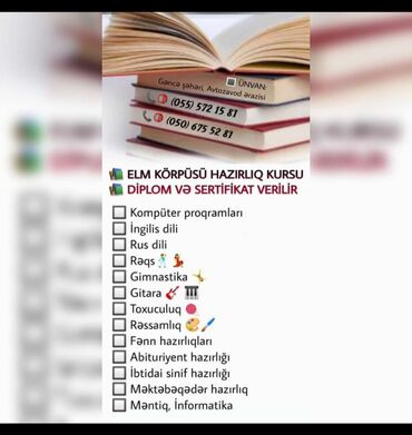 Azərbaycan dili və Ədəbiyyat hazırlığı. 5-11-ci siniflər və ibtidai siniflər üzrə dərslər keçirilir. Dərslər həftədə 3 dəfə 90 dəqiqə olmaqla tədris olunur. Bu aya özəl endirimlər mövcuddur. Əyani...
