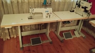 - Dəstdə müxtəlif sənaye tipli tikiş maşınları və stolüstü avadanlıqlar var. Hər biri möhkəm metal konstruksiyalı, Dext markalı tənzimlənən stol və pedallarla komplektdədir.