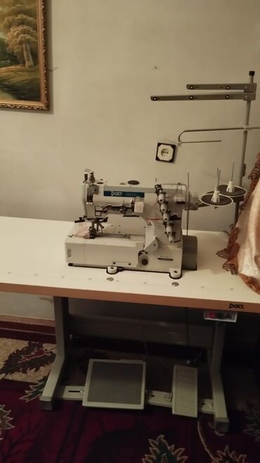 - Overlok/ketay maşınları: çoxsaplı (4–5 saplı) model, kənar emalı, birləşdirmə və elastik parçaların tikilməsi üçün. İplik dayaqları və ip bələdçiləri komplektdir.