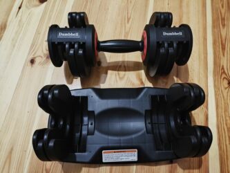 - Disklər bazada yerləşir: tutacağı fırladıb dambılı qaldırdıqda seçilən çəki birlikdə götürülür, qalanları bazada qalır