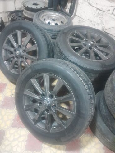 Toyota orijinal yüngül lehimli disk və təkər komplekti - Disk: Toyota orijinal 6-şüalı (5 bolt), mərkəzdə Toyota emblemi olan gümüş rəngli yüngül lehimli disk - Bolt düzülüşü: 5 bolt (5x ölçülü To...