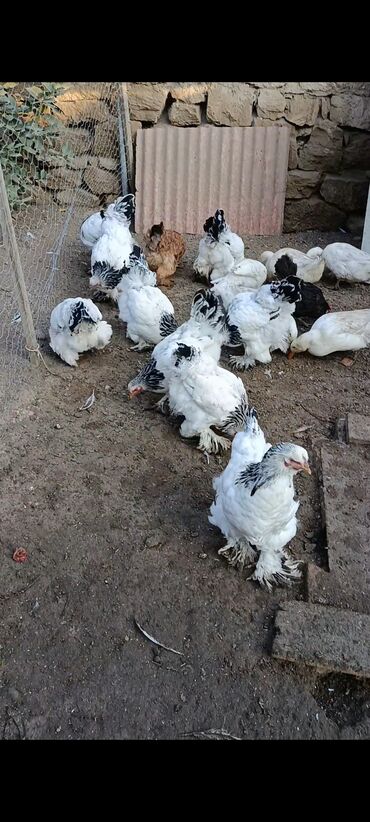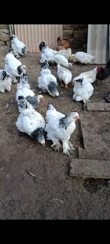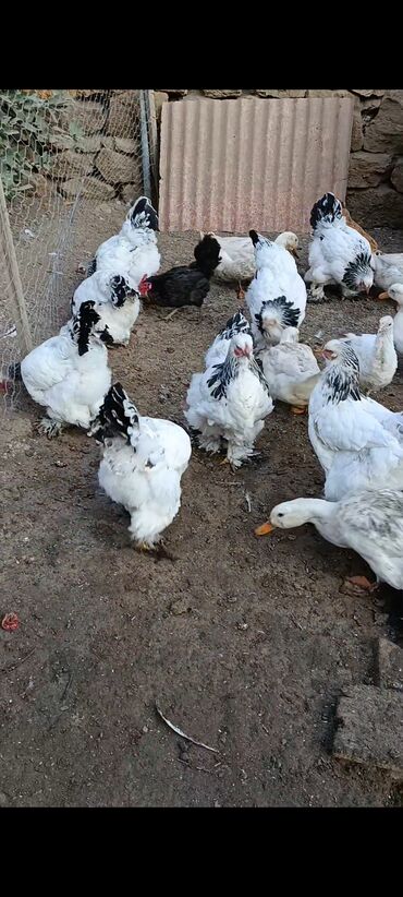 Məhsul: Təmiz cins brahma toyuqları (ağ rəng, qara naxışlı boyun və quyruq)