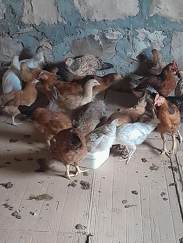 Salam 6dene toyuqlar satilir - Yard şəraitində saxlanılan bir neçə ədəd ev toyuqları. - Rənglər: ağ və qara (aralarında tünd-qəhvəyi və naxışlı lələklilər də var). - Yaş qrupu: gənc toyuqlar (şəki...