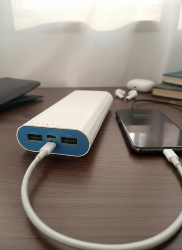 - 1x USB-C (IN) – enerji bankının doldurulması üçün - 1x micro‑USB (IN) – alternativ doldurma girişi - 2x USB-A çıxışı (OUT1, OUT2) – eyni vaxtda iki cihazı şarj edə bilir