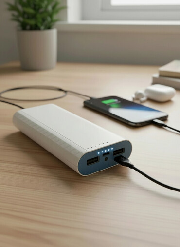 - 1x USB-C (IN) – enerji bankının doldurulması üçün - 1x micro‑USB (IN) – alternativ doldurma girişi - 2x USB-A çıxışı (OUT1, OUT2) – eyni vaxtda iki cihazı şarj edə bilir