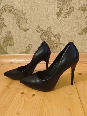 38 razmer mat qara stiletto topuğu 10 sm 1 defe geyinilib