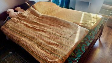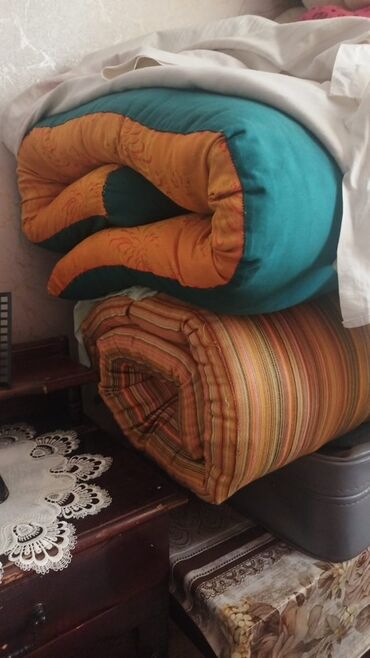 Qızılı naxışlı döşək/yorğan 2 eded 1 ededi 25azn - Material: qalın, yumşaq içlikli döşək; üzlük qızılı rəngdə klassik damask (barokko üslubunda) naxışlı parça. - Rəng və dizayn: isti qızılı ton, ...