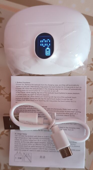 - Qutuda: qulaqlıqlar, şarj qabı, USB-A → Type‑C kabel, istifadə təlimatı