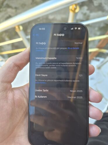 - Ön ekran tam ölçülü, Dynamic Island/kamera kəsiyi ilə.