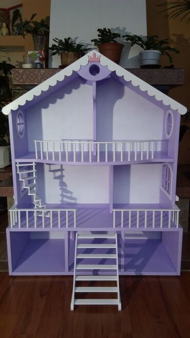 Böyük ölçülü üçmərtəbəli taxta kukla evi 240 azn a alinib. Bütün eşyaları üzerindedi. En 75 sm. Hündürlük 115 sm. İcerisinde enib qalxan lift var. Bəzi yerlərə çatdirilma var. Yasamal - Rəngarəng...