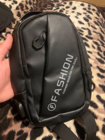 Kompakt çiyin/qarınqa çantası – “FASHION” brendi yazılı, suya davamlı tekstura ilə.