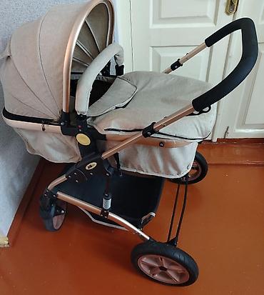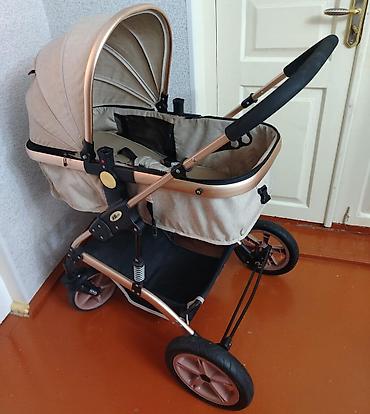 Uşaq arabası – beşik tipli, krem/qızılı tonlarda