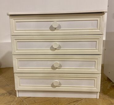 - Komod: 4 geniş çekmecəli, beşiklə eyni üslubda; paltar, bez və aksesuarlar üçün rahat təşkilat imkanı.