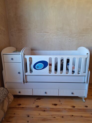 Usaq ùçùn çarpayi, 3-5 yaşa qeder, yellenir, altinda cəkməcəsi var, əla veziyyetdedi, cox az işlenib, 280 manat